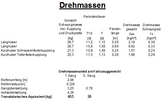 Wenn ich das kleinste Drehmassenergebnis 0,24 kgm² auf eine äquivalente translatorische Masse umrechne, komme ich immerhin im 1. Gang auf etwa 450 kg.