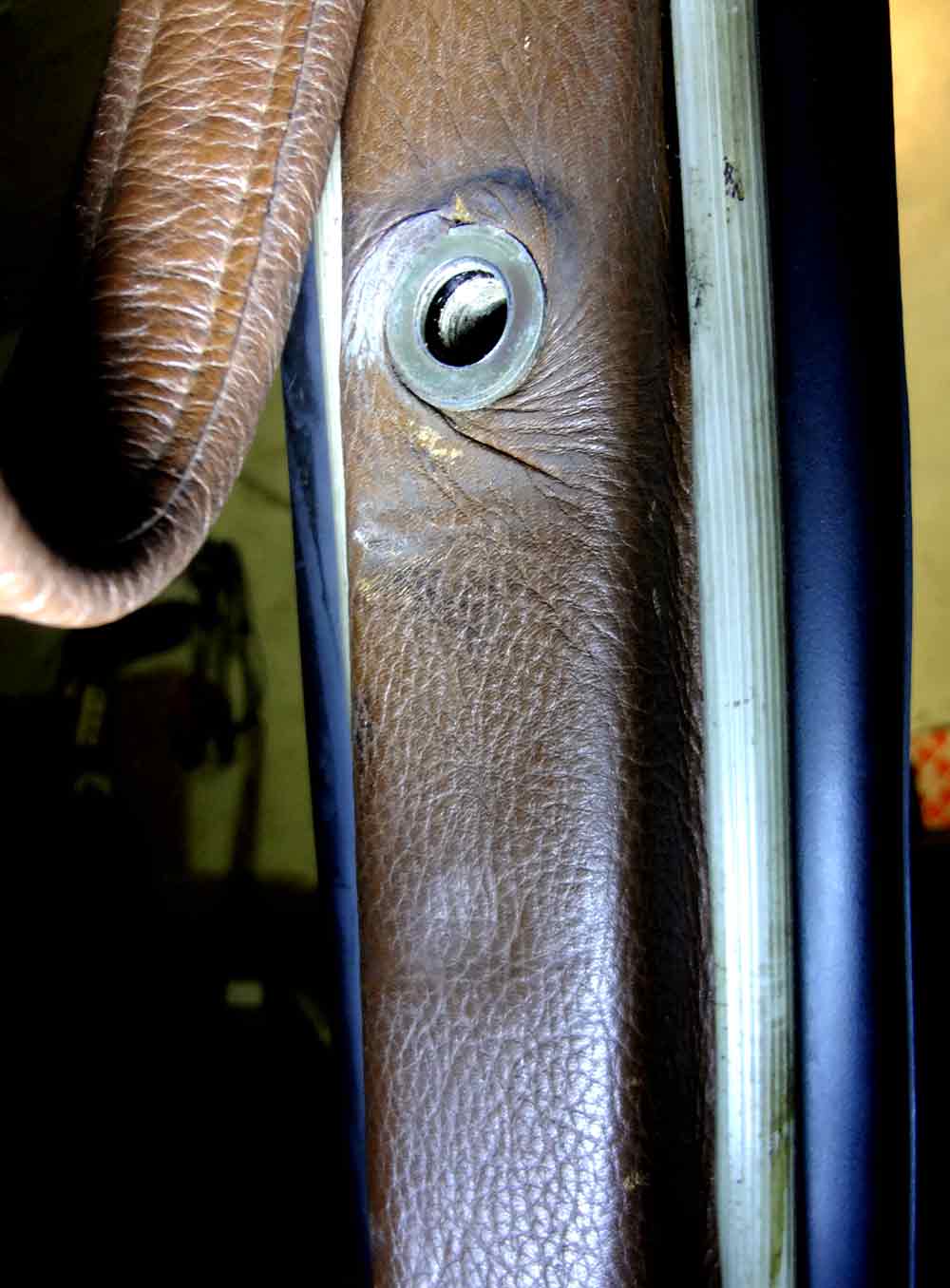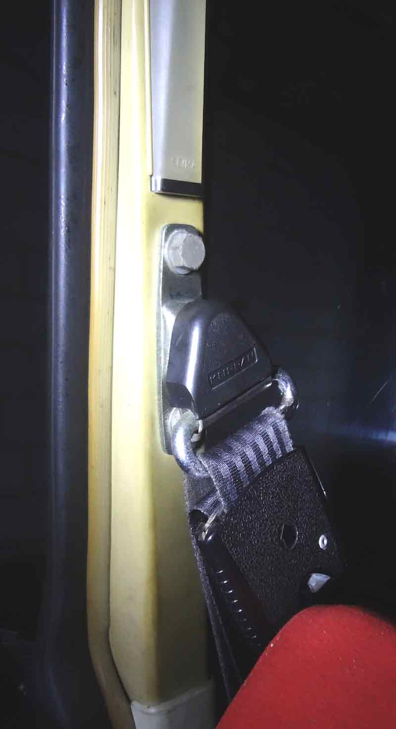 So, wie in Ulis Bild war bei meinem gewesenen ID19B (1969) der obere Gurtpunkt. Aber nur prinzipiell: bei meinem ID war das mit 2 Schrauben befestigte Teil ein elegant geformtes, verchromtes Blechformteil; die Fläche, auf der der Gurt-Umlenkpunkt saß, war etwas nach vorn in Fahrtrichtung geneigt, von hinten kann man an die (lose) Mutter.