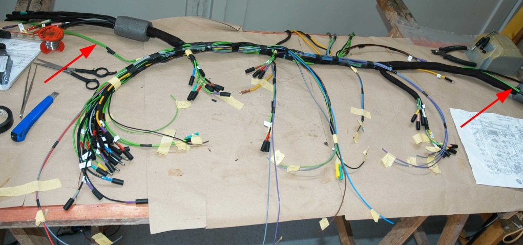 Auf diesem Bild habe ich Dir die beiden Kabel die zu den Türkontakten führen markiert.