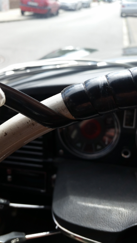 Hoch hat aktuell das Lenkradband in der "neuen" Version nicht mehr, daher musste ich mein altes erst mal flicken, so dass ich es nicht ganz abgenommen habe. (Fuer Bezugsquellen fuer das Lenkradband waere ich dankbar.)