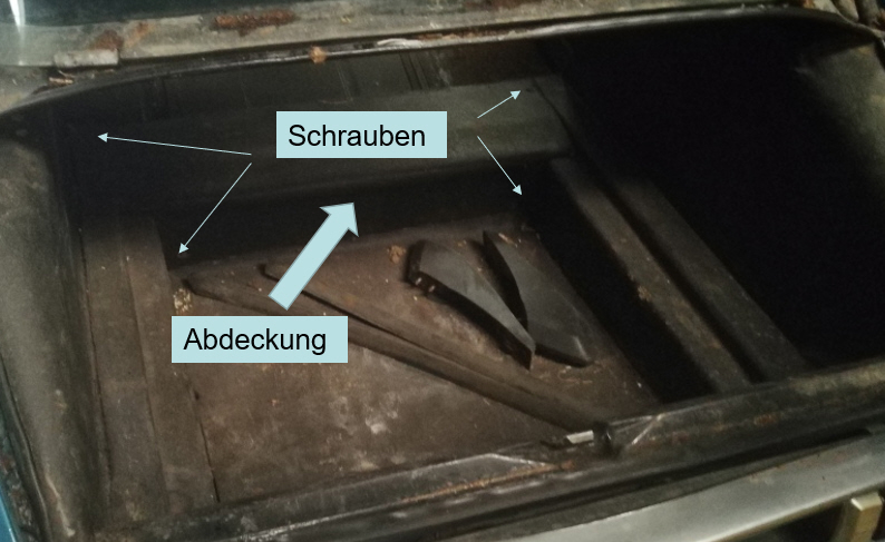 Die Abdeckung ist mit ein paar Schrauben links und rechts befestigt: