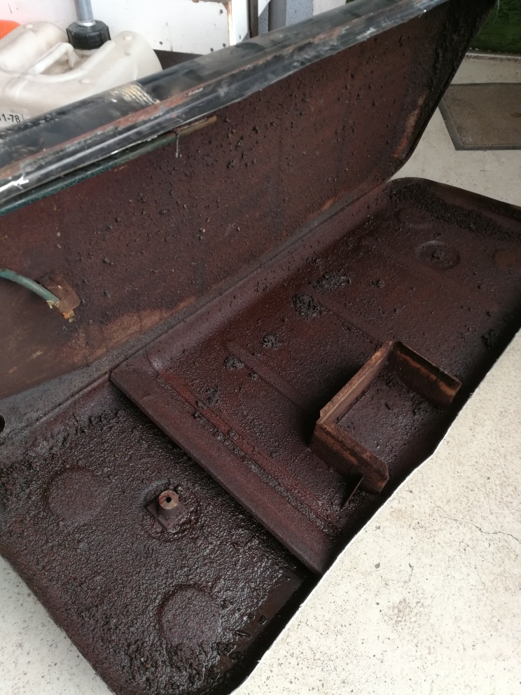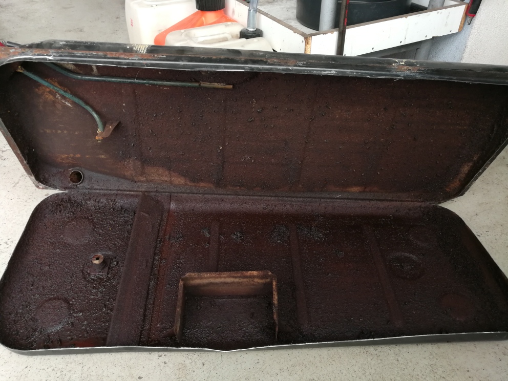 interessant, dass er unten, unter all dem dreck noch recht gut ist, aber an der tankoberseite nagt der rost so richtig.