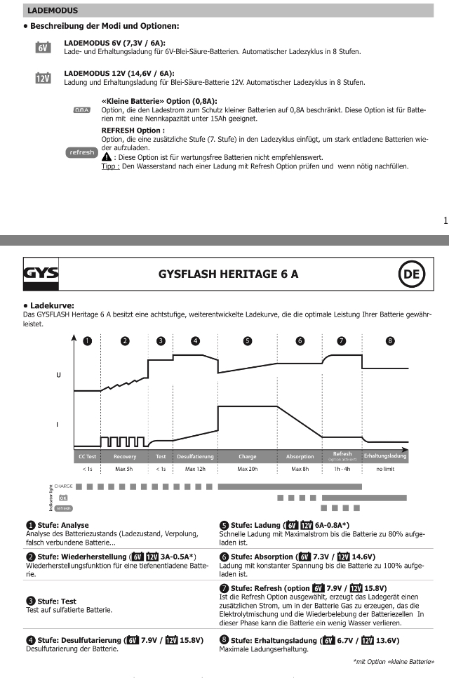 einer von uns beiden täuscht sich. Ich lese heraus das sich die 0,8 Amp auf die "Option kleine Batterie" bezieht (auch bei 12 Volt). Es steht auch: Ladung 6 Volt/12 Volt 6 Amp. Siehe Foto.