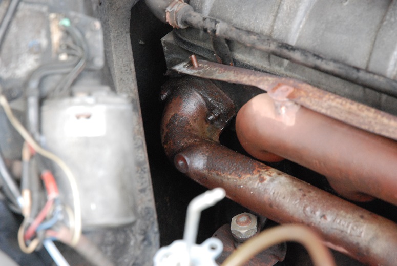 Der Krümmer ist einteilig. Das Entrosten / Planschleifen ist bei diesem Teil noch wichtiger, denn er ist sonst sehr bruchgefährdet durch Verspannung.