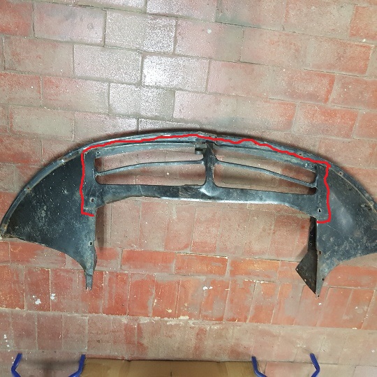 Ich würde die Schürze zunächst zerlegen, dazu entlang der rot eingezeicheten Linie die Schweißpunkte ausbohren, mit viel Gefühl versteht sich. Dann die beschädigten Bereiche richten und ausbeulen, anschließend alles wieder ordentlich verschweißen.