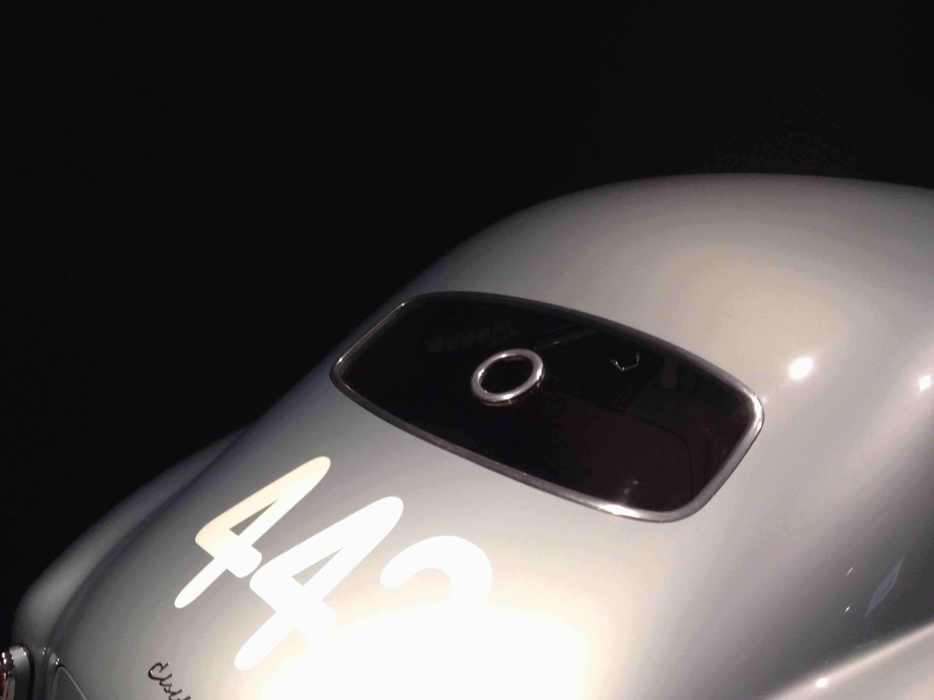 beim googeln hatte ich ein Bild von einem Cisitalia gefunden, der hinten einen große Zusatztank hatte. Der große rennmäßige Tankstutzen ging hinten durch die Scheibe. Leider kommt das Bild jetzt nicht mehr!