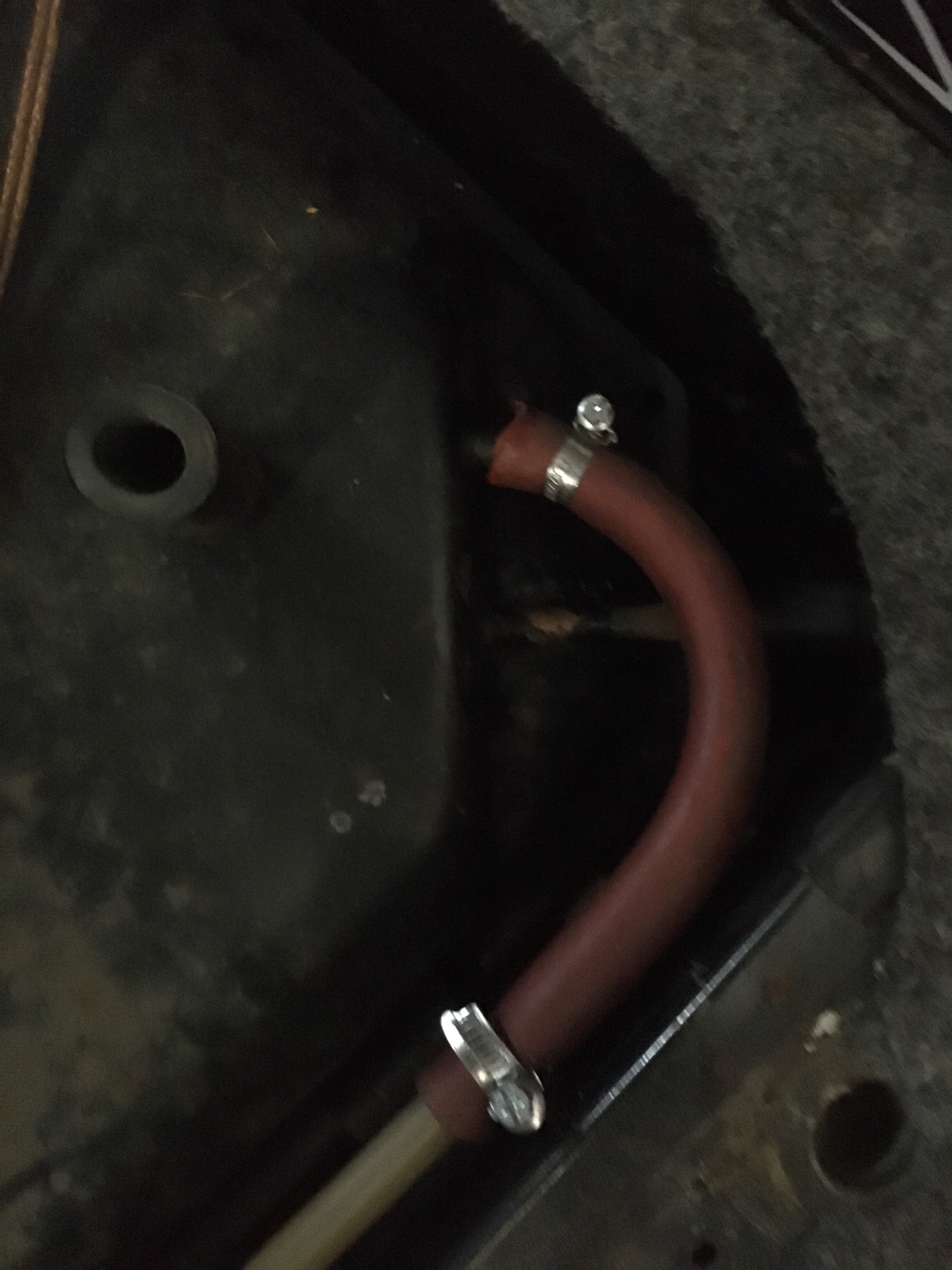 - ich verstehe nicht was du mit "Die Leitungen wurden nur ineinander gesteckt ohne richtige Verbindung," meinst - die Benzinleitung, geht, wie Robert schon geschrieben hat, durch das Rohr im Tank zum Benzinfilter (22 Schluessel oder so, keine Nuss verwenden, da die abrutscht) - auf dem Bild sieht man nicht viel, ich meine aber, dass bei der Benzinleitung der Gummi zum abdichten fehlt (das duerfte man bei vollem Tank riechen und ist sicher schlimmer als der Gartenschlauch (zumindest kurzfristig)). Falls das so ist, muss die Benzinleitung wieder rausgezogen werden, ca. 10cm eines passenden, benzinresistenten, Gummischlauch druebergezogen werden, dann die Benzinleitung wieder in den Tank bis zum Filter unten gesteckt, und zuletzt der Gummischlauch ueber das Rohr im Tank geschoben werden.