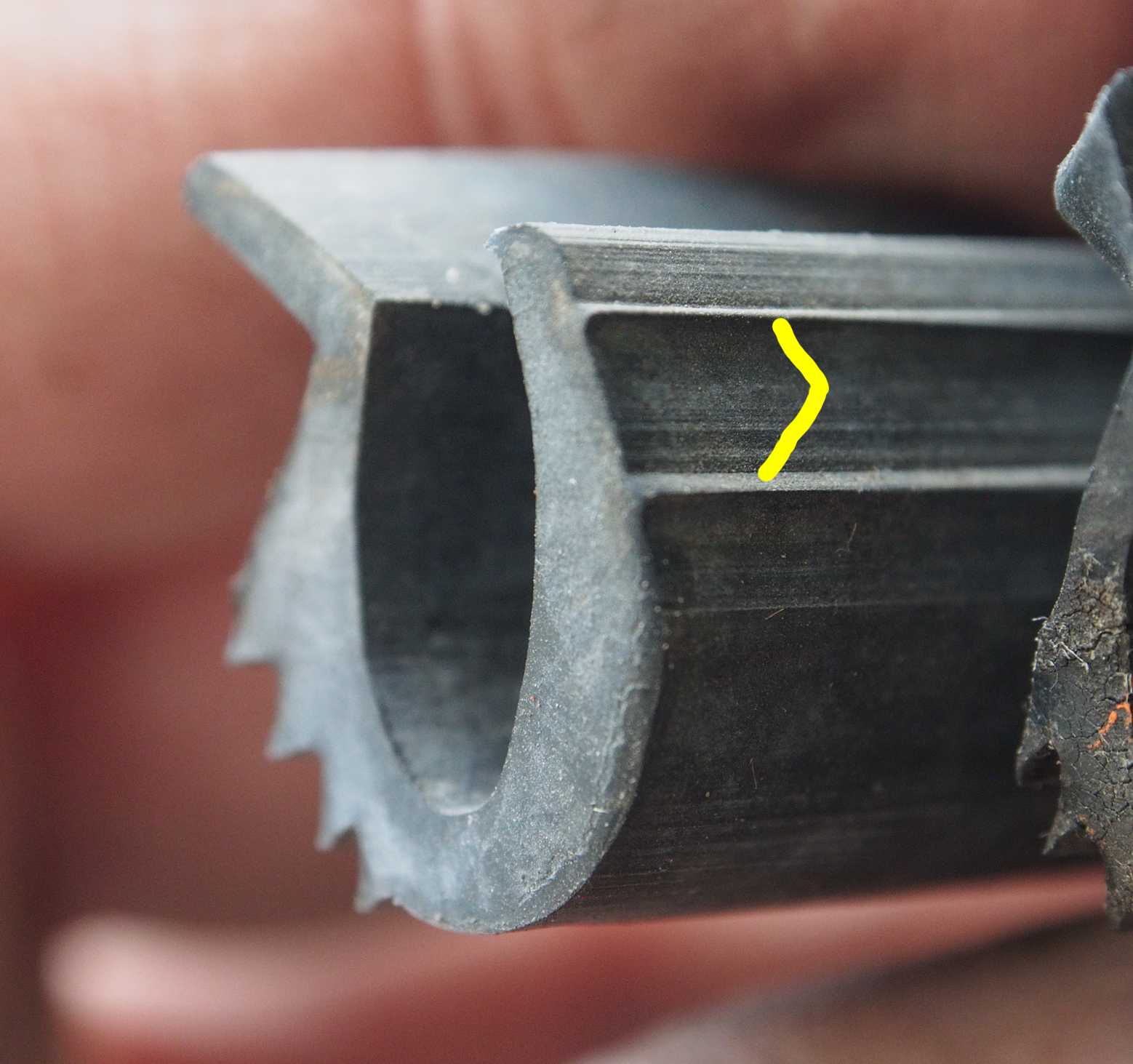 Leider zeigt die Dichtung einige Beschädigungen an der Dichtlippe (Kante) zum Dach.