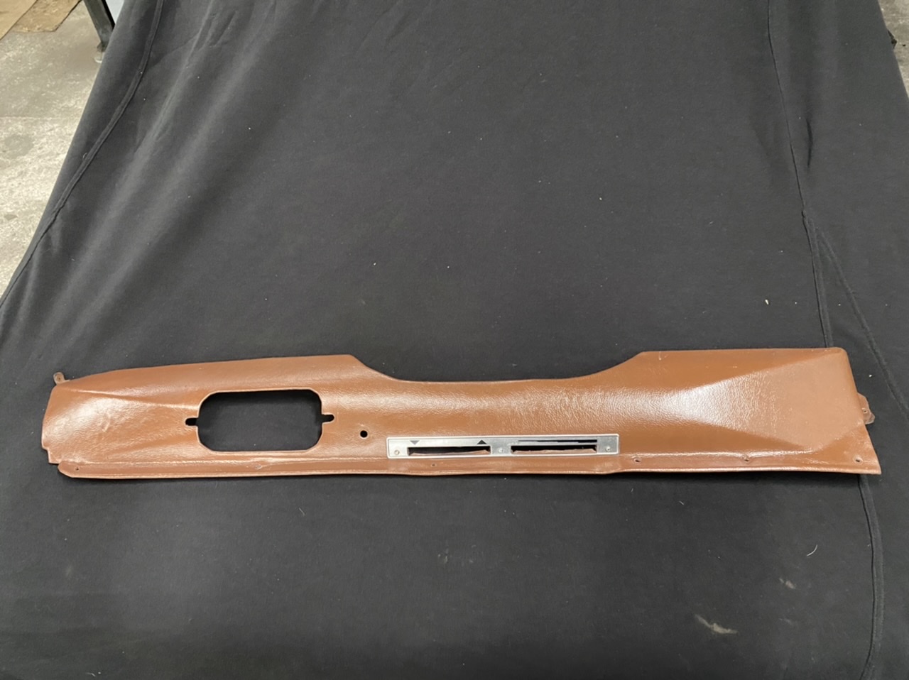 Das braune Blech unten am Armaturenbrett; eventuell auch andere Farbe/lackiert, falls Bezugsmaterial braun möglichst original verfügbar ist.