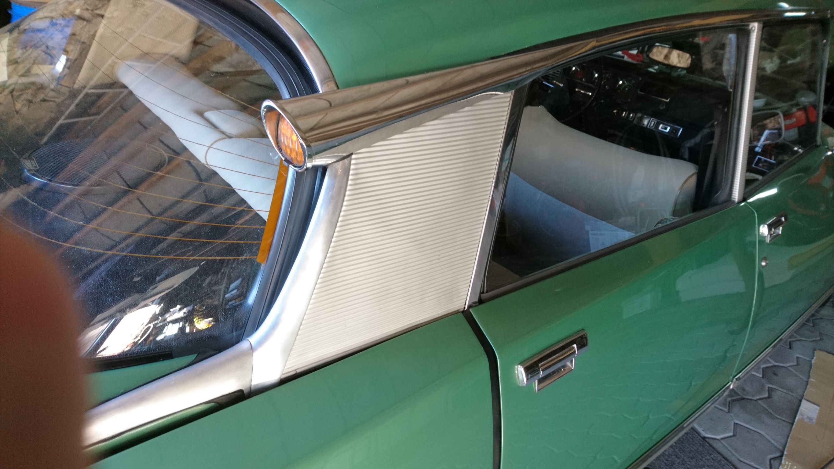 anbei einige Fotos .Meine C-Säulenbleche hatten einige Dellen , umd ich habe dann doch alles abgebaut und in Ordnung gebracht .Die Schraube an der Trompete ist natürlich abgerissen ,habe sie ausgebohrt oder mit Drehmel abgeschliffen .Kaufst Dir 2 neue Aufnahmen für die Blinkerteile .Die C-Bleche wie Thorsten schreibt gerichtet ,gesäubert jedoch nicht weiter bearbeitet (Lack oder geschliffen) .Wenn Du die Heckklappe und Heckscheibe rausnimmst kannst Du hinten alles wieder reinigen und Rostschutz auftragen .Ich verwende dafür Brantho Korrux 3in1. Die Kotflügelaufnahmen werden geschraubt und dabei ist die C-Säulenverkleidung doch nicht in Gefahr .