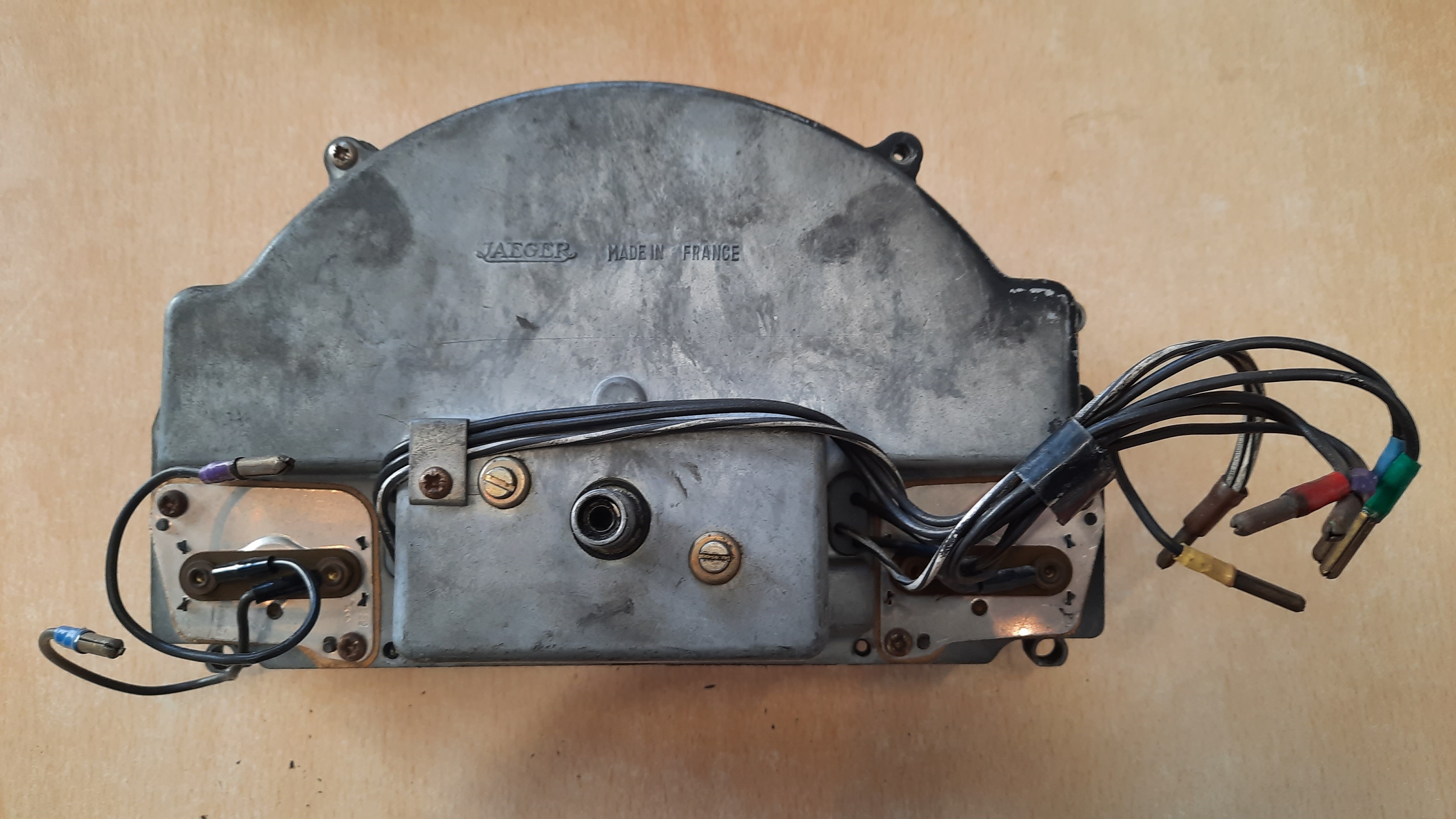 Ich habe noch den originalen Tacho liegen, der drin war, als ich den Wagen kaufte. Der wurde vor vielen Jahren aussortiert, weil bei dem die Tachonadel sehr stark schwankte, und ich günstig den bekommen konnte, der jetzt drin ist.
