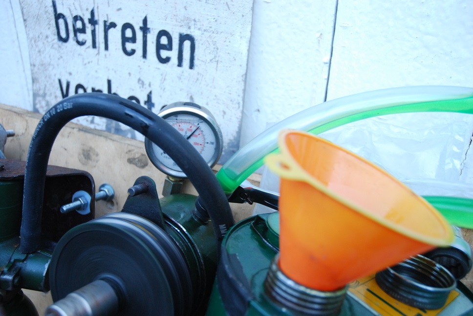 Die Pumpe hatte noch etwas Restdruck (ca. 40 bar) und im Ansaugschlauch steht eine kleine Luftblasse.