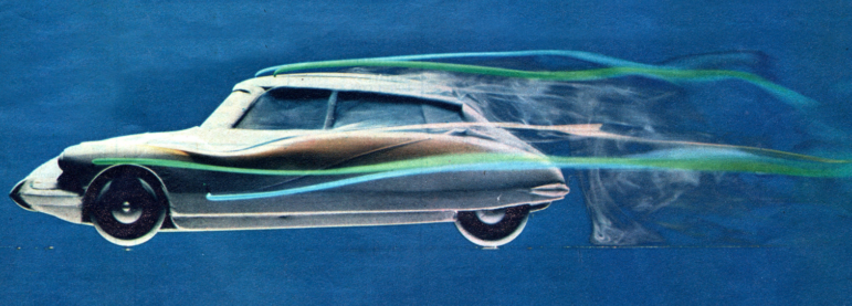 In Zusammenhang mit der Stromlinie finde ich noch die Frage spannend, ob Citroën damals für die DS schon einen Windkanal zum Testen hatte. Das einzige, was ich dazu gefunden habe, sieht weder aerodynamisch gut, noch wirklich seriös (Maßstabsmodell?) aus ...