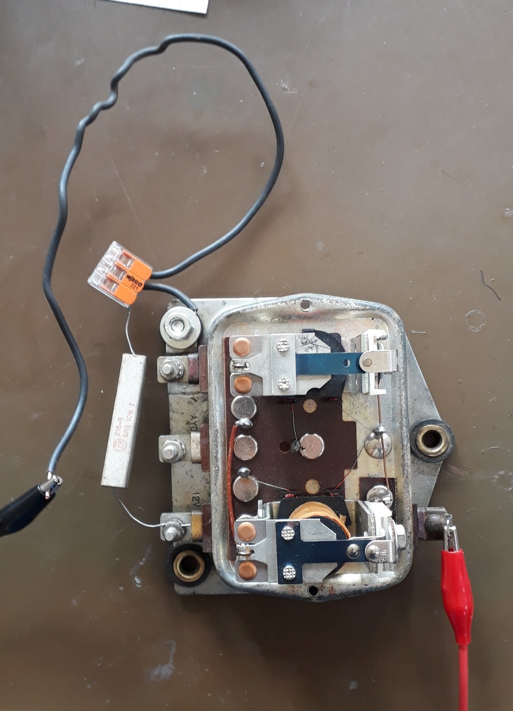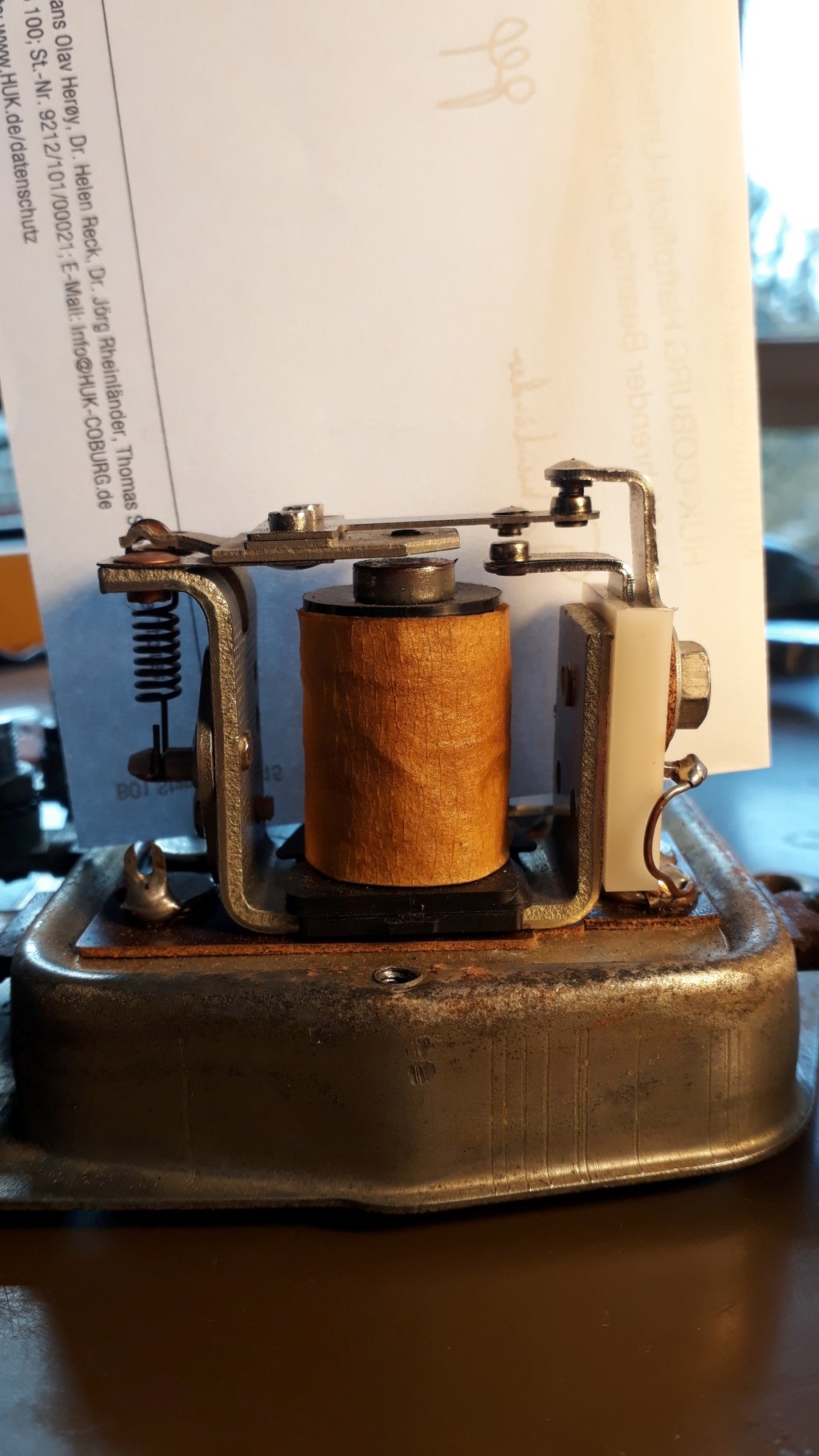 So konnte ich nur messen, dass der "Erregerstrom" bei 8 V (je nach Relaistellung (oben, mitte, unten) 1,1A, 0,4A und 0A betrug.