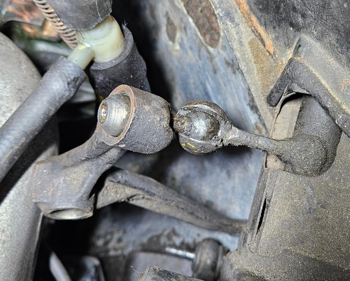 Da ist etwas Spiel drin (gewesen), was man ja über die Kronenmutter einstellen kann. Ich wollte die Gelegenheit nutzen, die Kugelköpfe und -sitze zu säubern und neu zu fetten. Ich sehe aber keine Möglichkeit die kleine Stange mit den Kugeln zu separieren. So muß man das wahrscheinlich im eingebauten, jetzt gezeigten Zustand machen, oder?