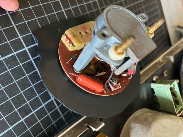Da sitzt eine Kunstoffhaube unter dem Drehzalmesser, die muss ab und dann kommt man an die Platine.