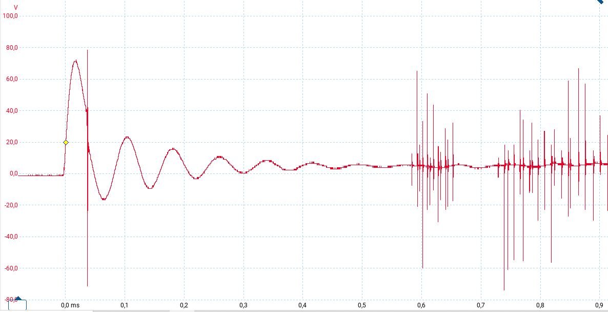 @Hy1600: ohne Kondensator ist ewig was los. Wie geschrieben ist das wahrscheinlich der Grund warum nur Leerlauf möglich ist. Mit Kondensator sieht es schöner aus. Es ist jedoch nur die erste Spannungsspitze die den Zündfunken erzeugt. Die Schwingungen danach nicht mehr.