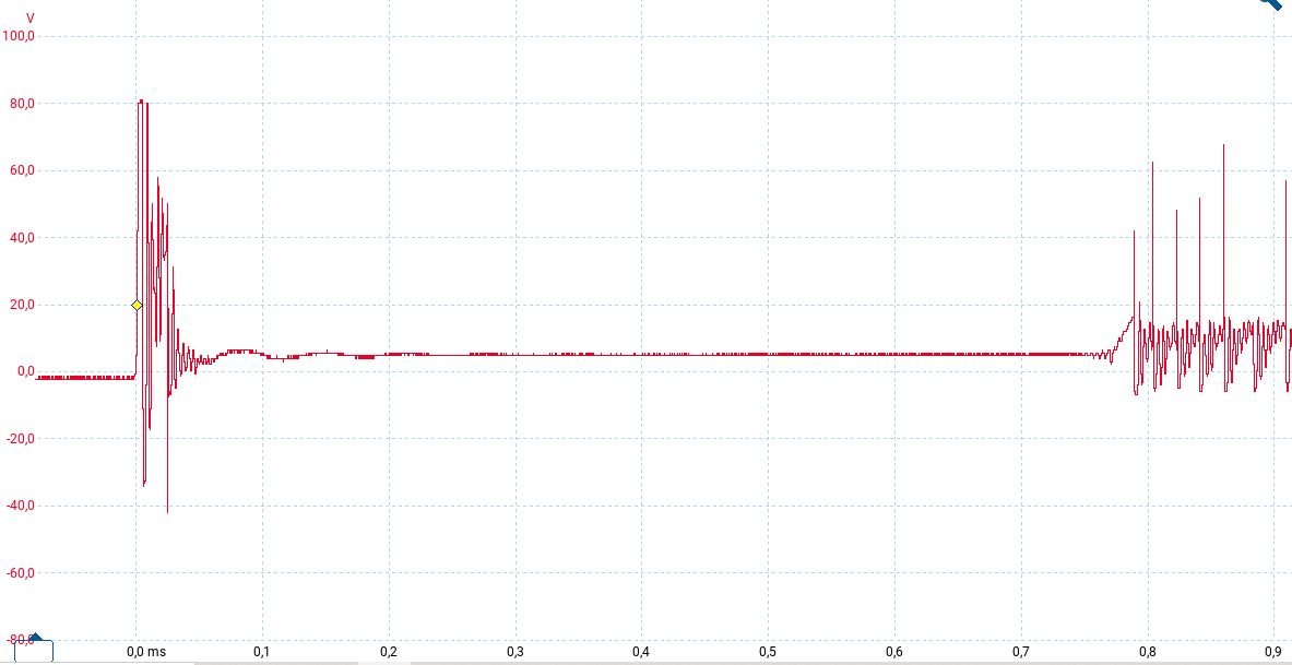 Habe nochmal gemessen. Jetzt direkt am Primär der Zündspule. Spunnungsversorgung 3V, ohne Vorwiderstand.