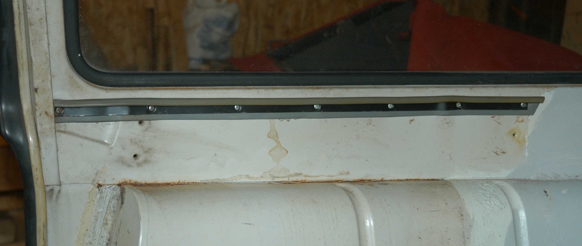 Die Seitenverkleidung war oben mit einer Metallschiene befestigt