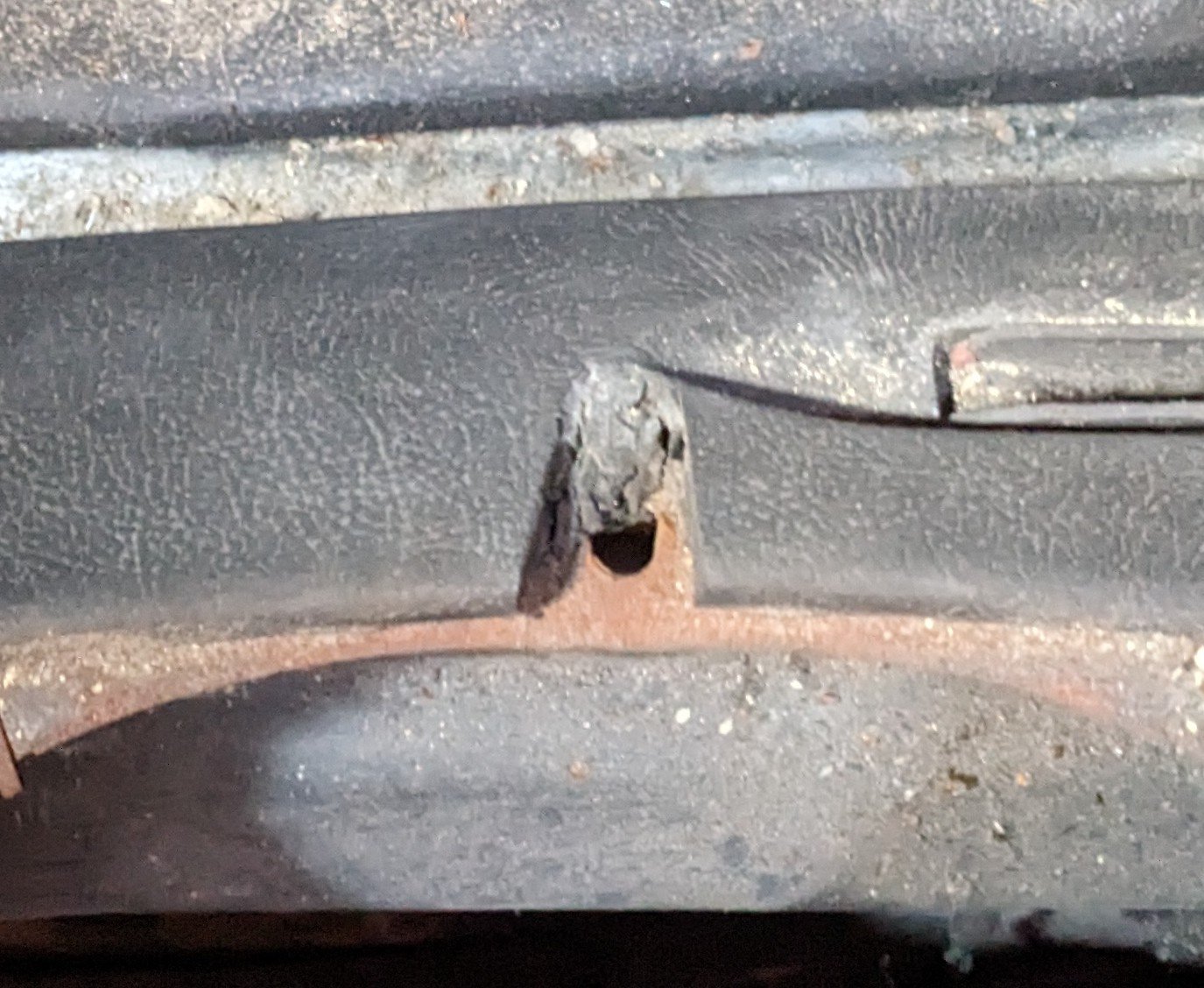 im Blech der späteren Bretter ist das Loch für den unteren Spiegel auch noch da: