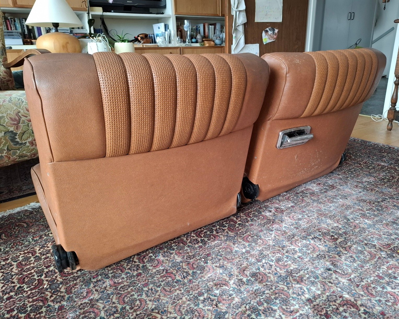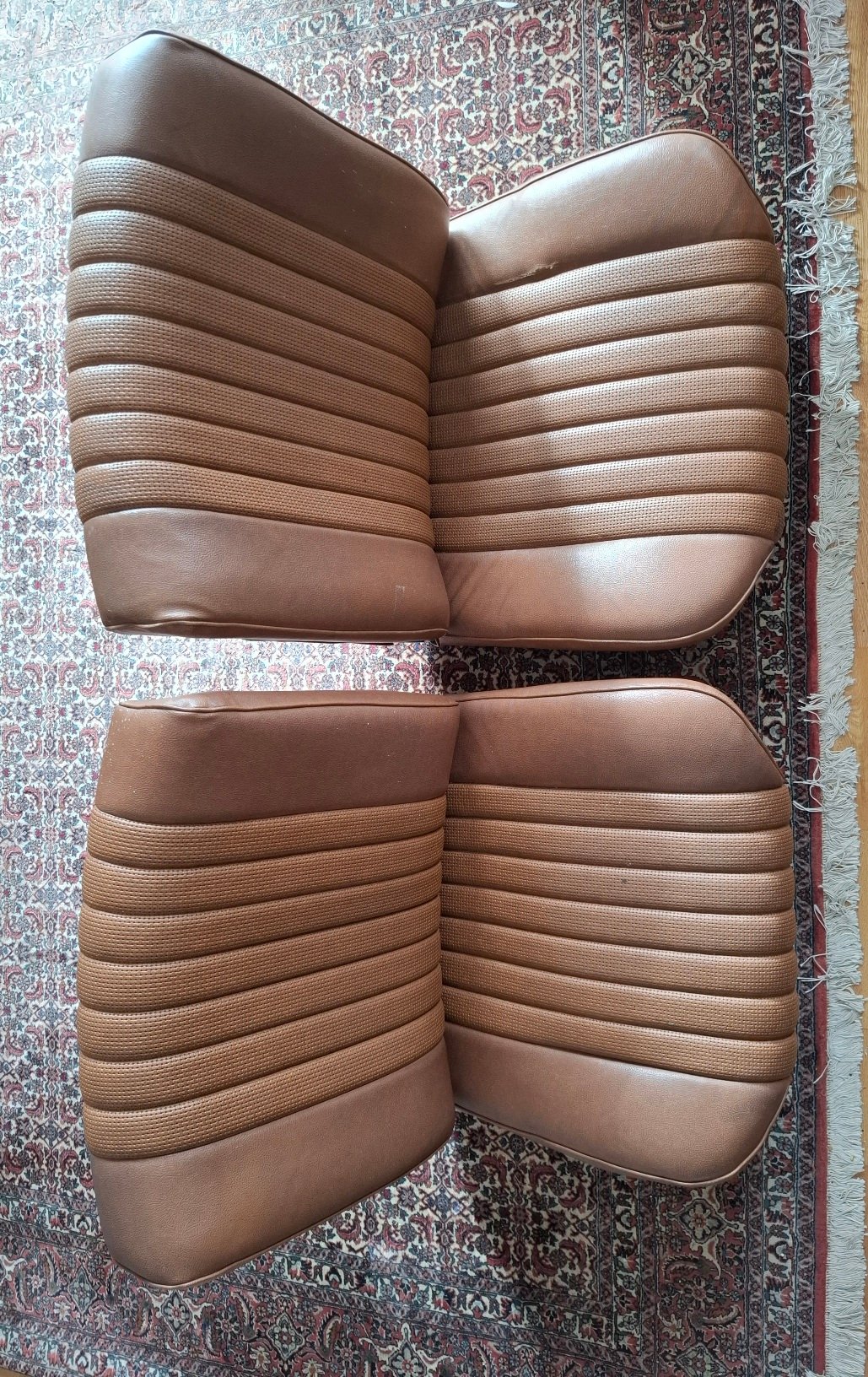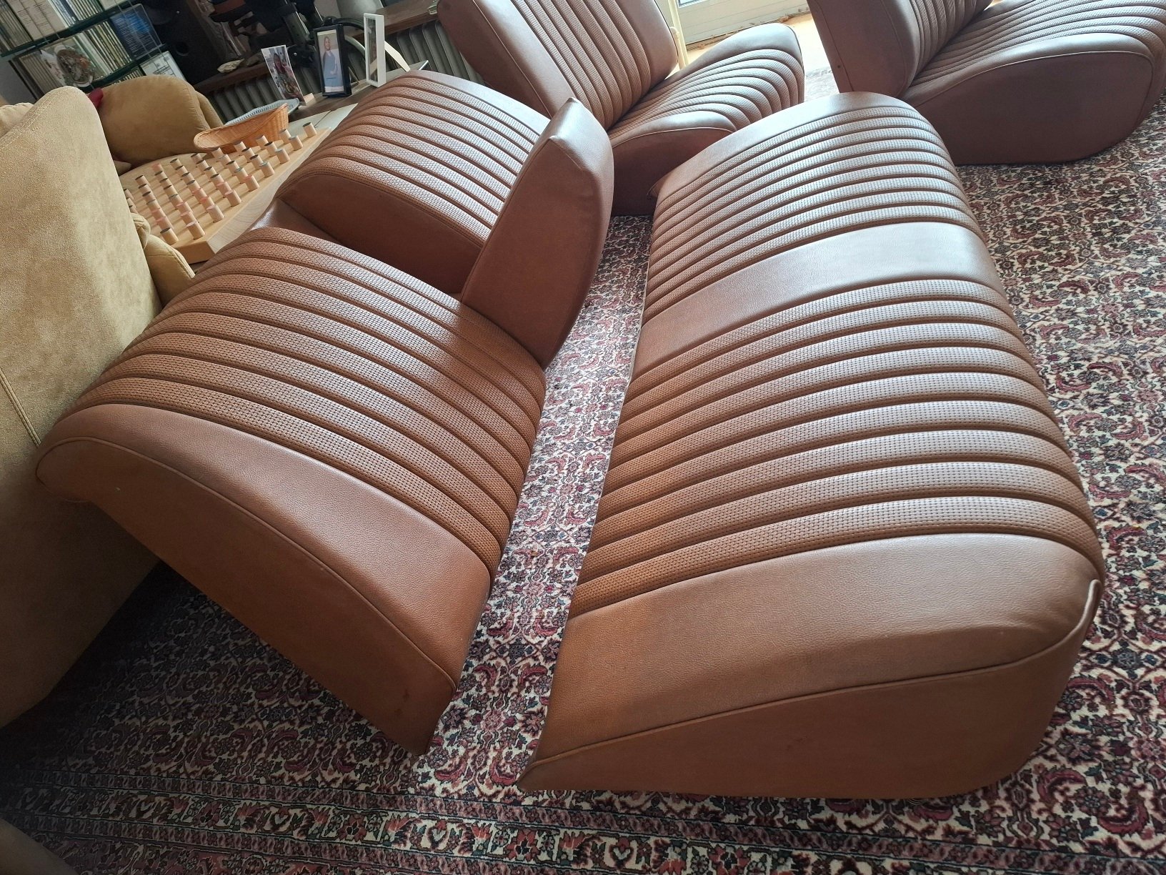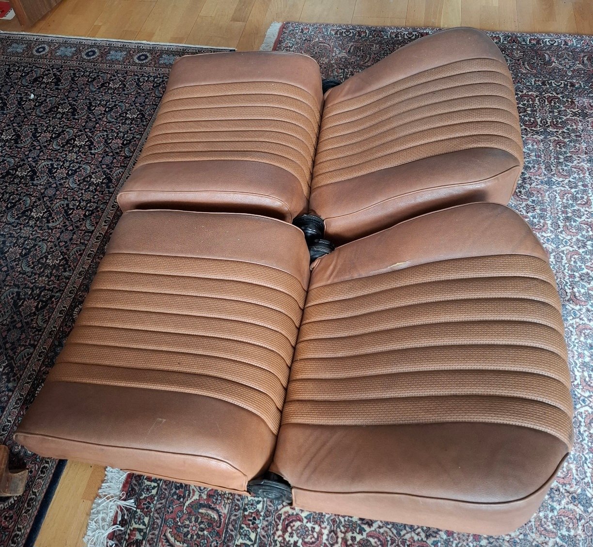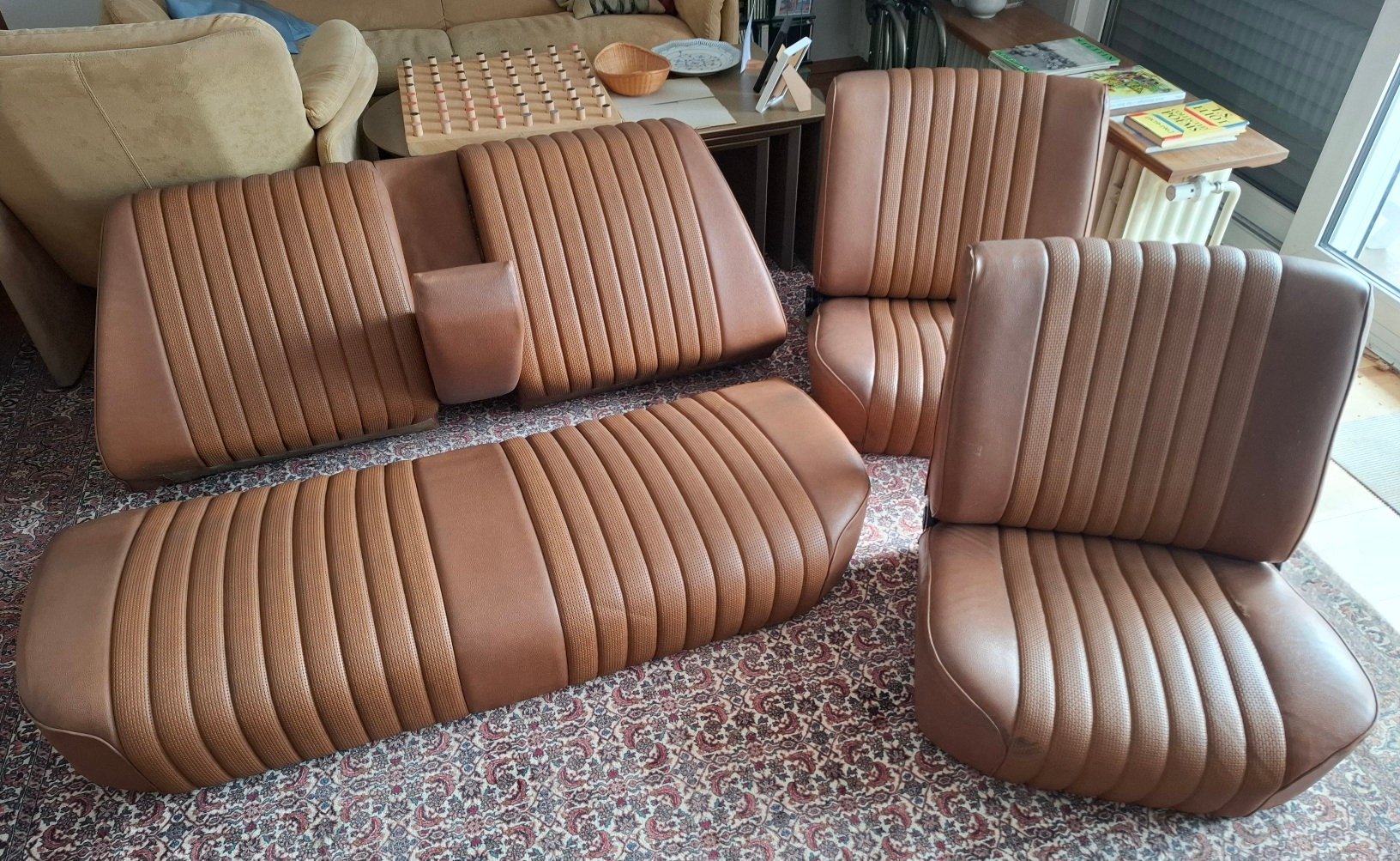 komplette Innenausstattung in Skai hellbraun - 2 Vordersitze mit Drehrad, Rückbank und Rückenlehne mit Mittelarmlehne