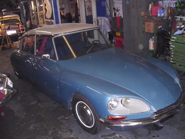 die Sitzbezüge sind nicht glatt, das liegt wirklich an den Fotos. Es ist Stoff. Auch ist die Lackfarbe eigentlich heller (bleu platiné eben). Die Bilder wurden in der Werkstatt ohne Tageslicht gemacht, daher die Farben etwas verfälscht.