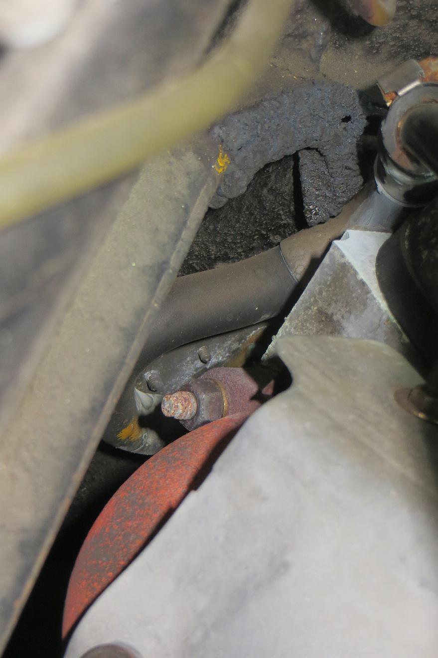 Hier ein Photo vom Schlauch an mein 1968-er DS19, ich das ist die originale Befestigung (ich habe den Schlauch allerdings mal ausgebaut um das Heizungsventil auszubauen).