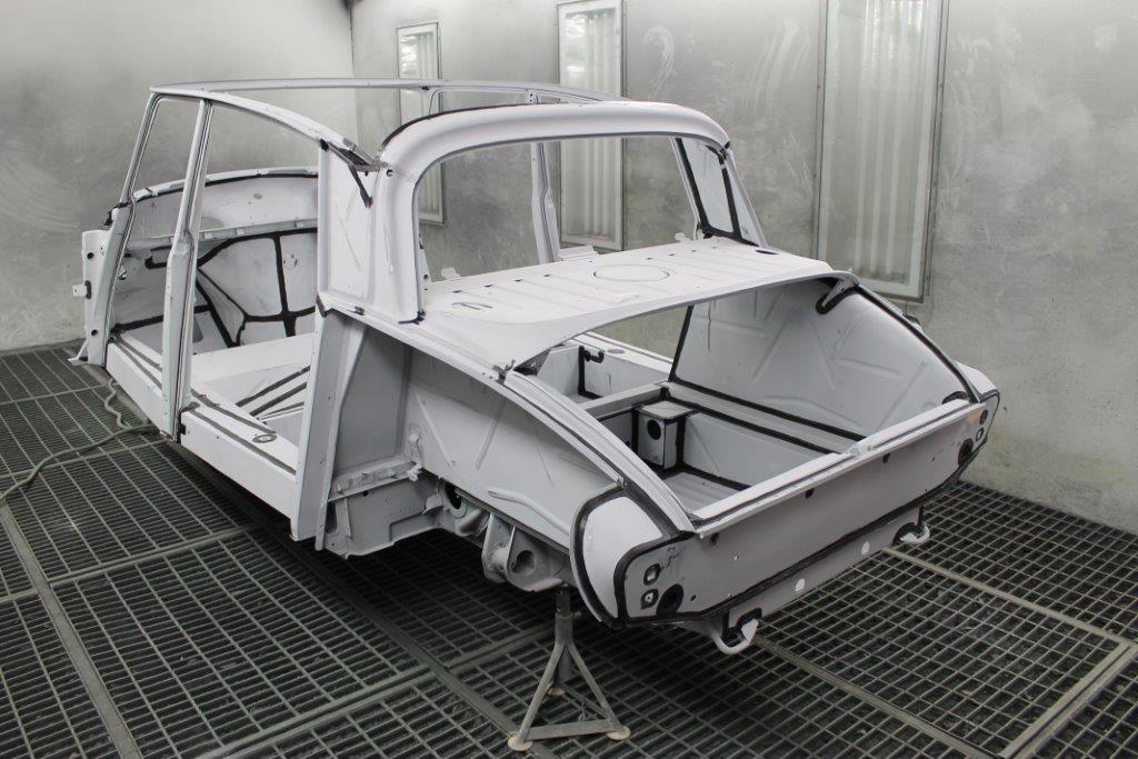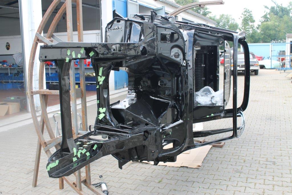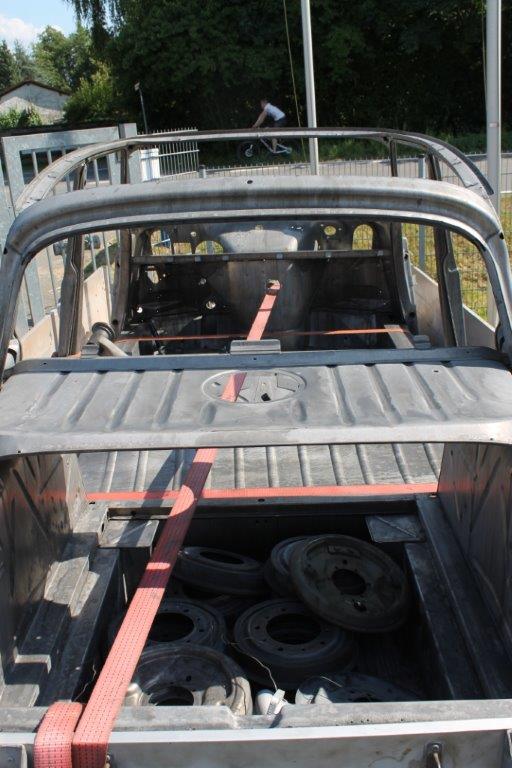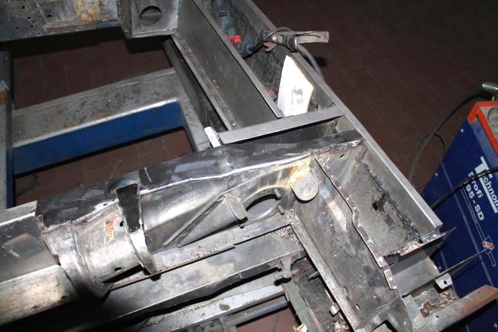 Das Chassis wurde im Tauchbad entlackt und anschließend notwendige Blechsanierung durchgeführt.