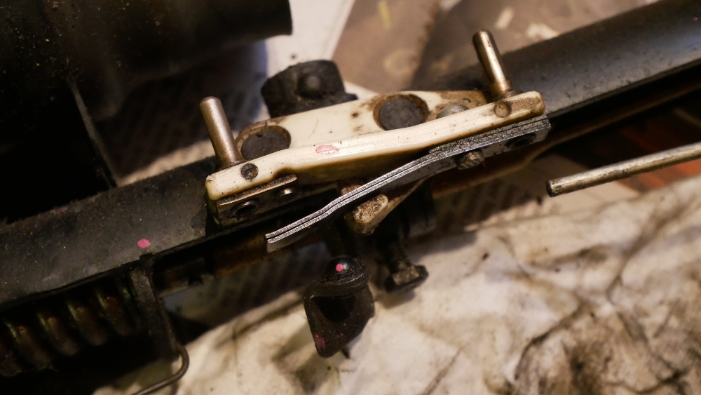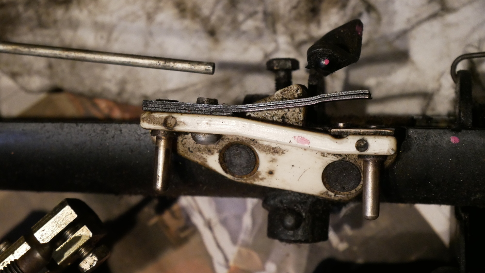 Und wenn man die Stellschraube am Hebel vor den Federn reindreht, verkürzt man den Weg des Schalthebels in Richtung Démarrer. Dadurch hat der Hebel die Chance, die Rückstellkraft der federbelasteten Kugel der Leerlaufstellung zu nutzen. Also sozusagen das Niemandsland zwischen Anlassschalterfedern und Kugelmulde verkleinern ...