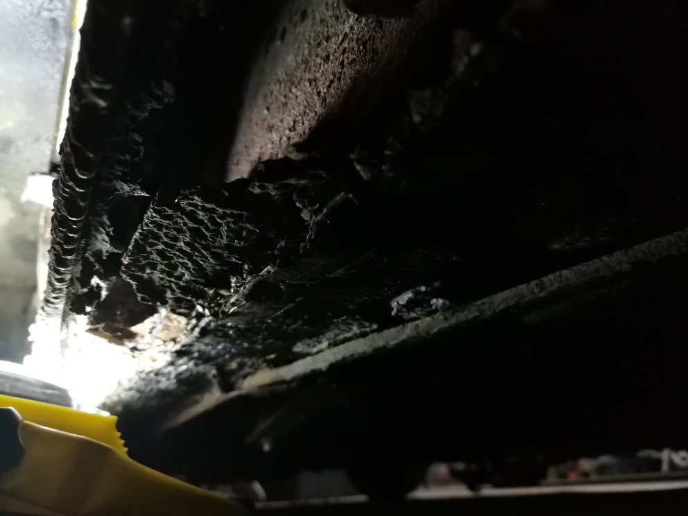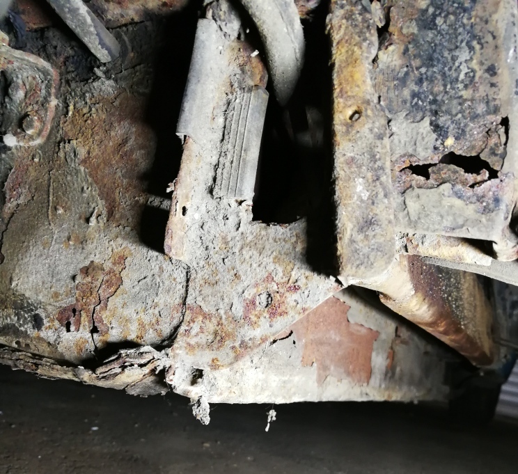 so, fertig für heute, innen alles raus bis auf die armaturen und auch die seitlichen bodenabdeckungen entfernt. da tun sich jetzt schon abgründe auf. längsseitig auf beiden seiten von vone bis hinten durch. klar ist das reparierbar, aber wirklich nur im notfall, falls ich absolut kein besseres chassis ergattern kann.