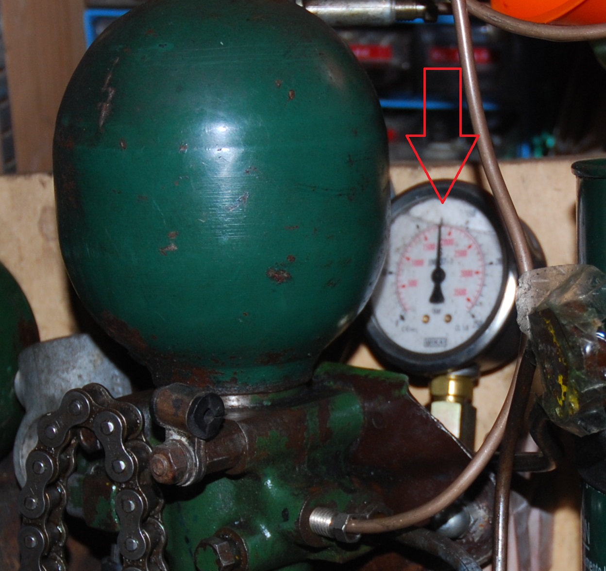 Dann ist die Seite schonmal dicht. Der Druckspeicher hat noch 45 bar und spielt bei den Drücken eh nicht mehr mit. Die anderen Pumpen sind immer relativ schnell wieder auf 45 bar gefallen und da stehen geblieben, einige allerdings auch bis zur drucklosigkeit.