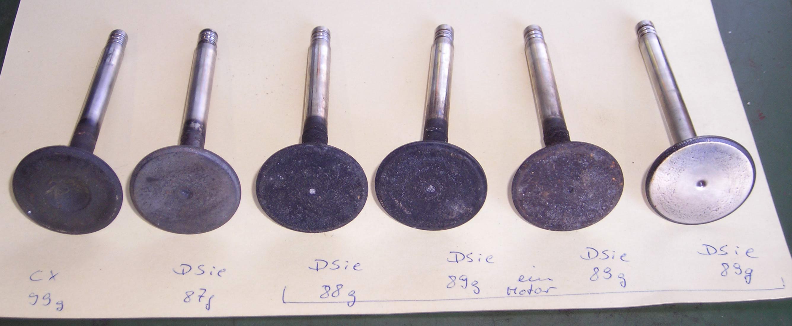 Vielleicht sind die Ventile auf den Fotos ja Einlassventile, dann würde das Gewicht genau passen.