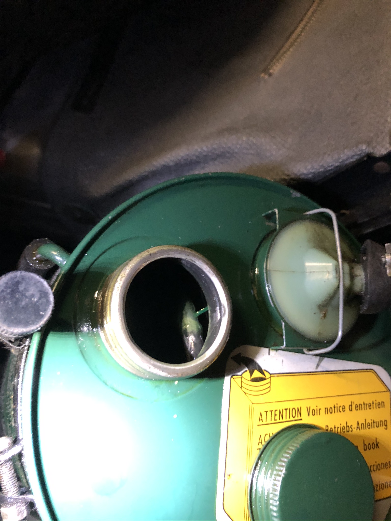 Eine Öffnung in diesem Rohr könnte normal sein? Mit anderem Auto vergleichen ist hier in meinem Umfeld mangels Fahrzeugen unmöglich. Vielleicht schaut ja mal jemand hier aus dem Forum in seinen Vorratsbehälter und vergleicht mit meinem Foto. Das ist im Normalbetrieb, ohne Anforderung an die Hydraulik gemacht. Beim Anheben des Autos versiegt der Strahl weitgehend, beim Absenken spritzt es ordentlich herum, auch gegen den Deckel. Da drückt es dann wohl auch Flüssigkeit nach außen.