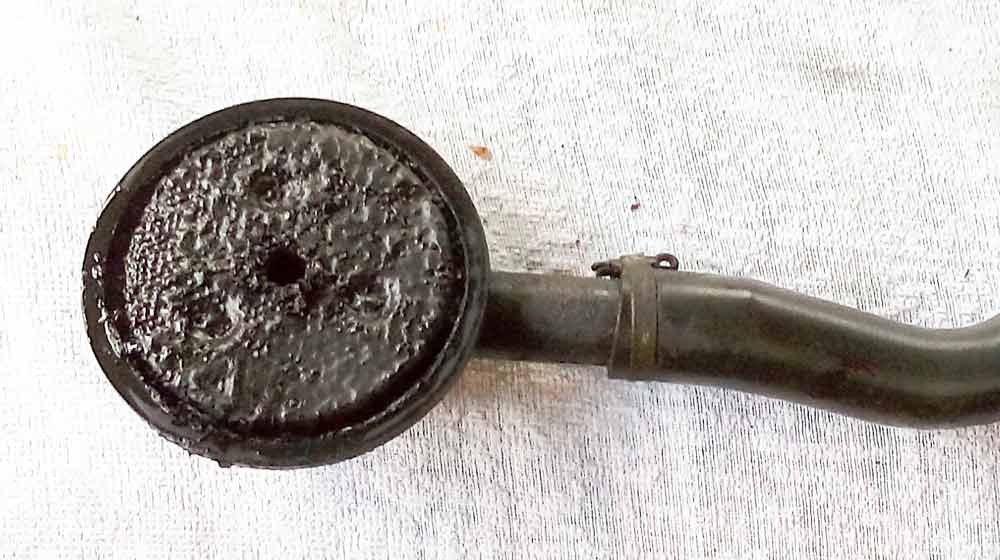 der Pfeil unten zeigt auf auf die Ölrücklaufbohrung, diese sollte frei sein.