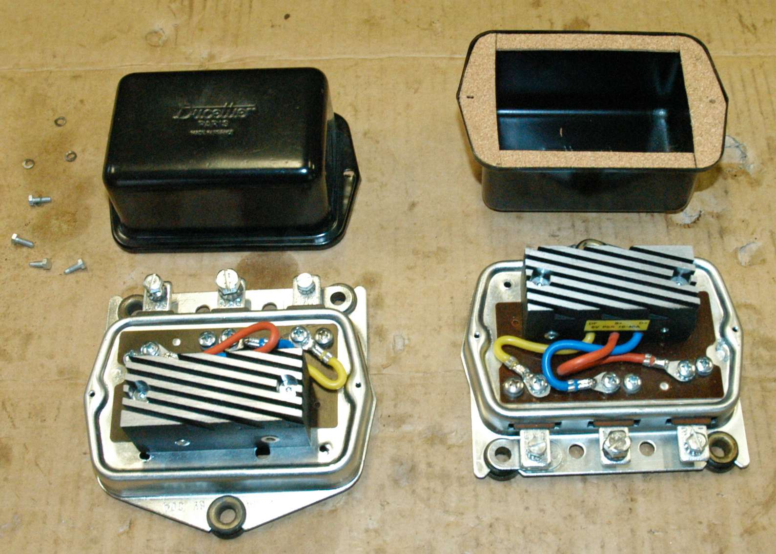 Ich bin sehr glücklich mit dem Regler, den mir die Fa. Laubtec (= Laubersheim) für meine 12PS- Ente gebaut hat. Der größte Vorteil gegenüber seinem mechanischen Pendant ist ein bereits bei wesentlich geringerer Drehzahl einsetzender Ladebeginn. Das ist bei meiner 6V- Lima mit nur 10 Amp. Leistung (!) speziell bei Nachtfahrten von essenzieller Bedeutung für eine (am Amperemeter ablesbar) wenigstens einigermaßen ausgeglichene Bilanz. Allerdings kann bei einer unter Nachtfahrbedingungen auf 6,4 V herabgesunkenen Bordspannung der Akku nicht mehr geladen werden. Hier bekommt dann die V- (=Ville) Stellung des Lichtschalters ihren speziellen Stellenwert.