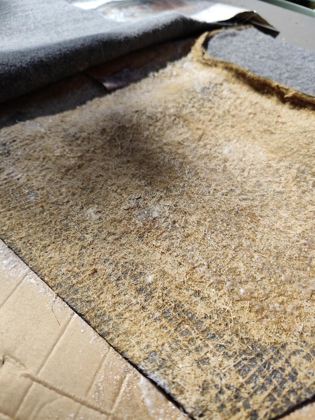 Ich habe auch die alten gebrauchten Kofferraumverkleidungen problemlos neu verklebt - ob Du dazu die losen Fusseln wieder fixieren musst?