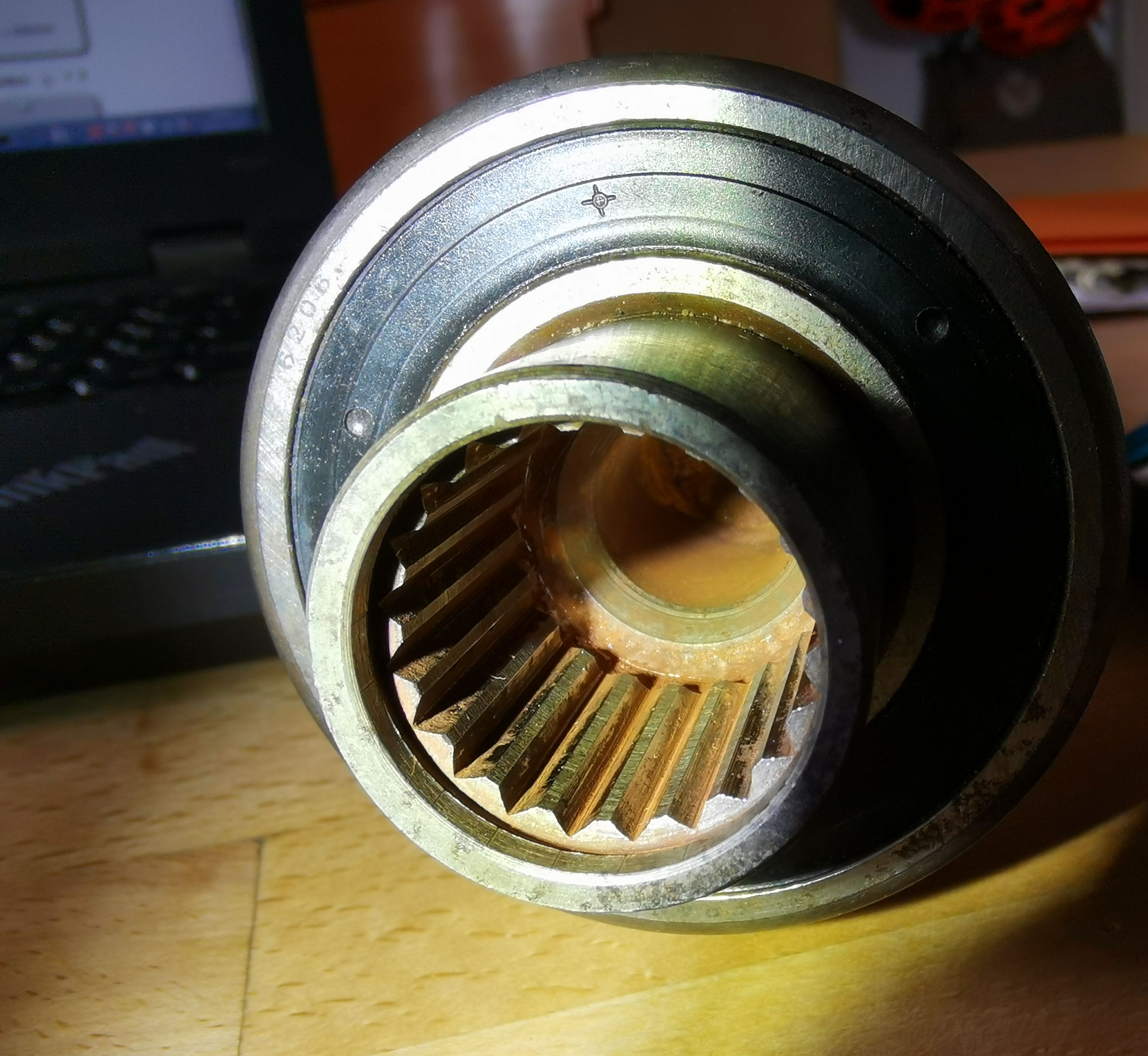 So schaut das Getriebe mit Primärwelle aus, wenn man es vom Motor getrennt hat: