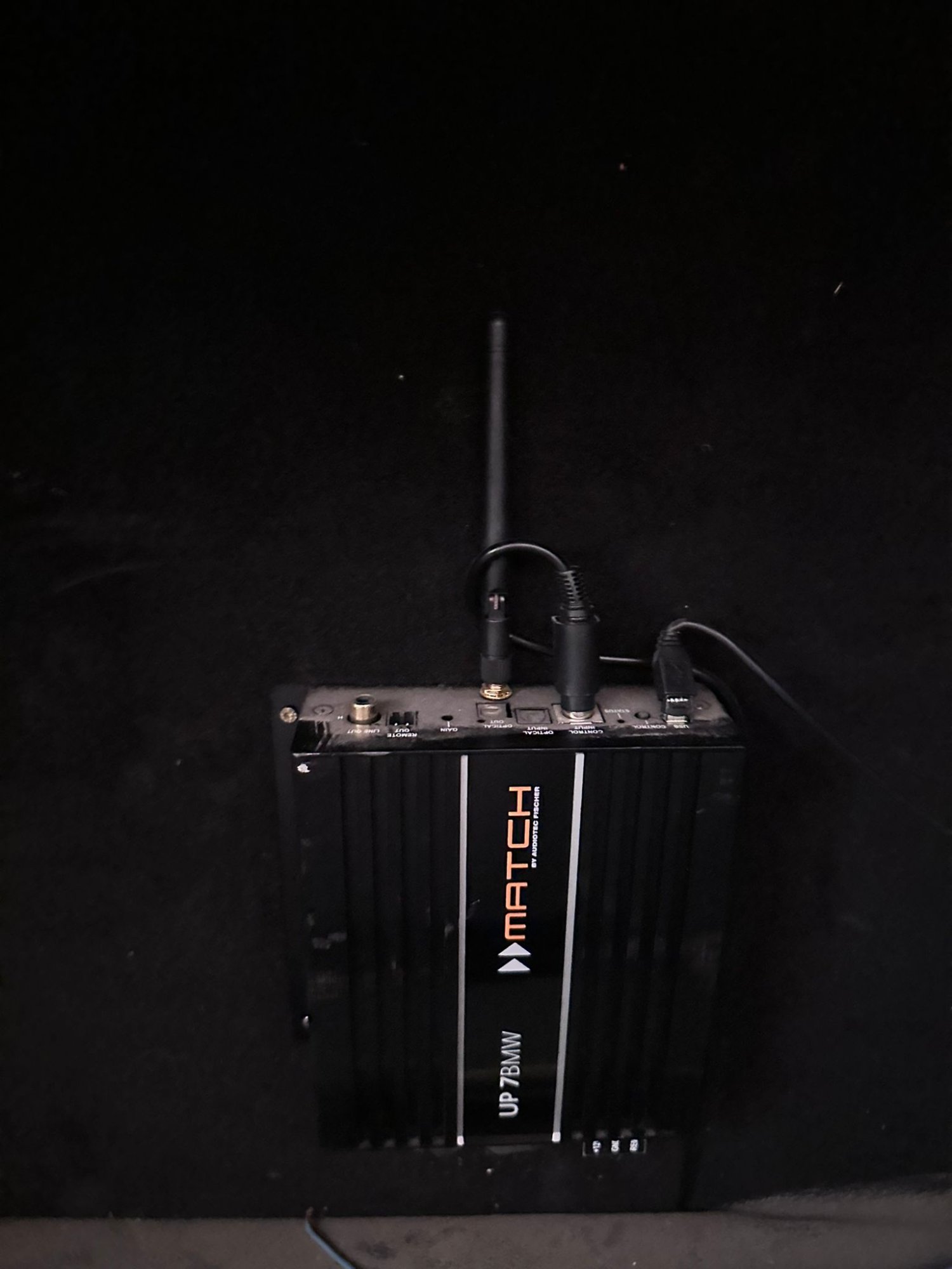 Hinten an der Rücksitzlehne im Kofferraum den Verstärker in Schuhkarton-Größe montiert.