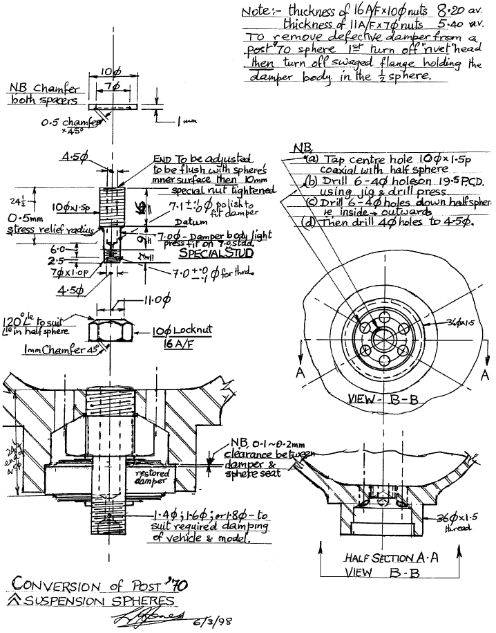 so seit heute Mittag hat meine '68-er DS 19 wieder geschraubte Federkugel mit geschraubte Dämpfer vorne und hinten. Die Dämpfer sind DS 436-06e (vorne) und DS 436-06f (hinten), also die Dämpfer die 1963 eingeführt wurden.