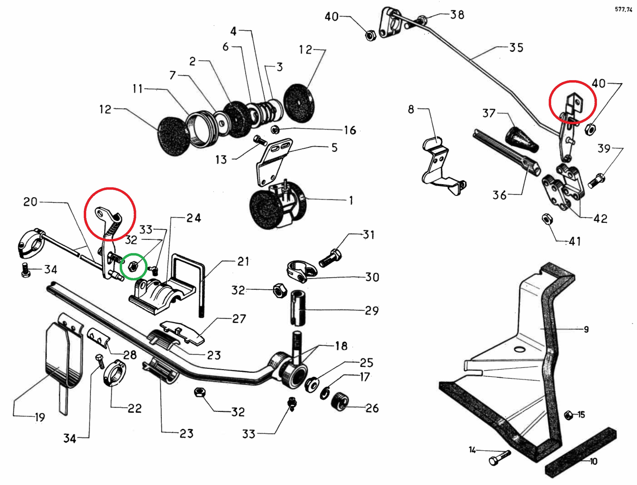 Die Mutter die sich mal an meiner DSuper5 gelöst hatte habe ich grün markiert. Da hat sich auch keine genaue Höhe mehr eingestellt. Mal zig cm zu hoch, mal zig cm zu tief :-/. Zum Glück ist diese Mutter nur runtergefallen und lag auf einem Blech