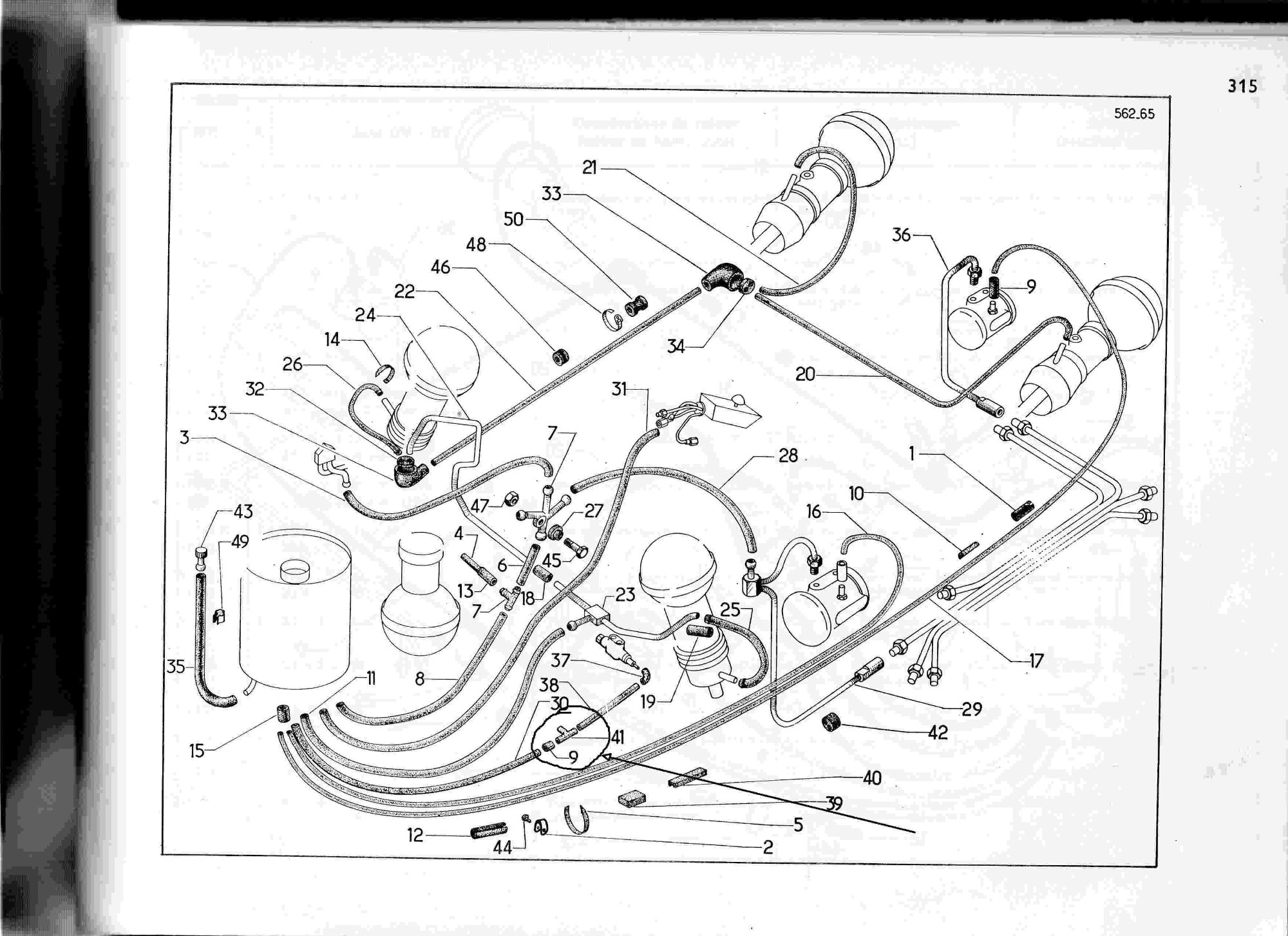 Diese "Spaghetti"-Leitung ist normalerweise an dieser Stelle nicht getrennt. Dort wo sie den Knick in den Kofferraum macht, ist eine Blechkante. Daran scheuert dieser Rilsan-Schlauch durch. Da da kein Systemdruck drauf ist, sickert da durch die Federbewegungen und das Atmen der Cafetiere Tröpfchen für Tröpfchen raus.