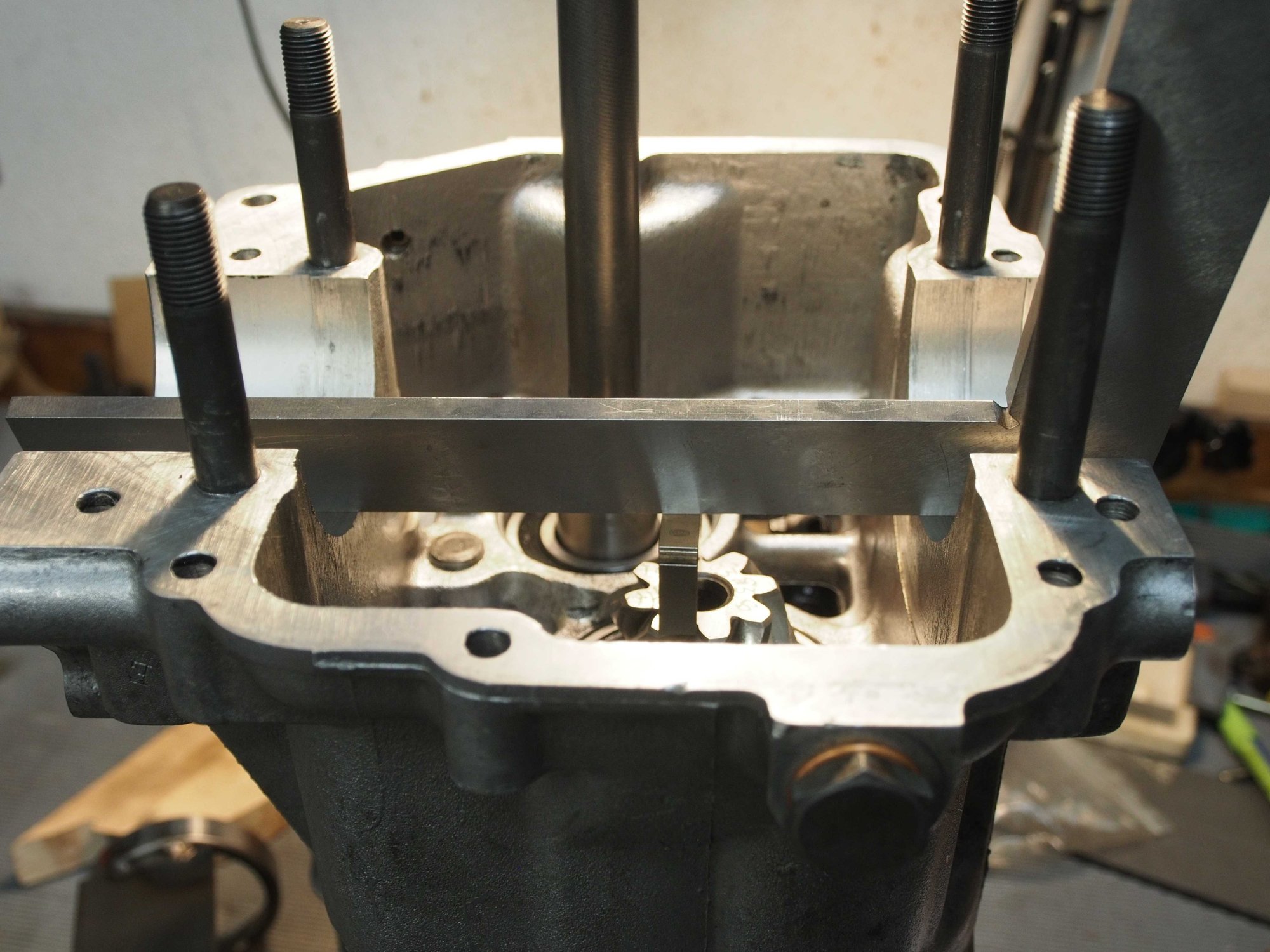 Etwa 90-100 °C um das Lager anzuwärmen. Die Mitte der Lagerbohrung für das Differenzial war bei keinem der Getriebe mittig zur Trennfläche.