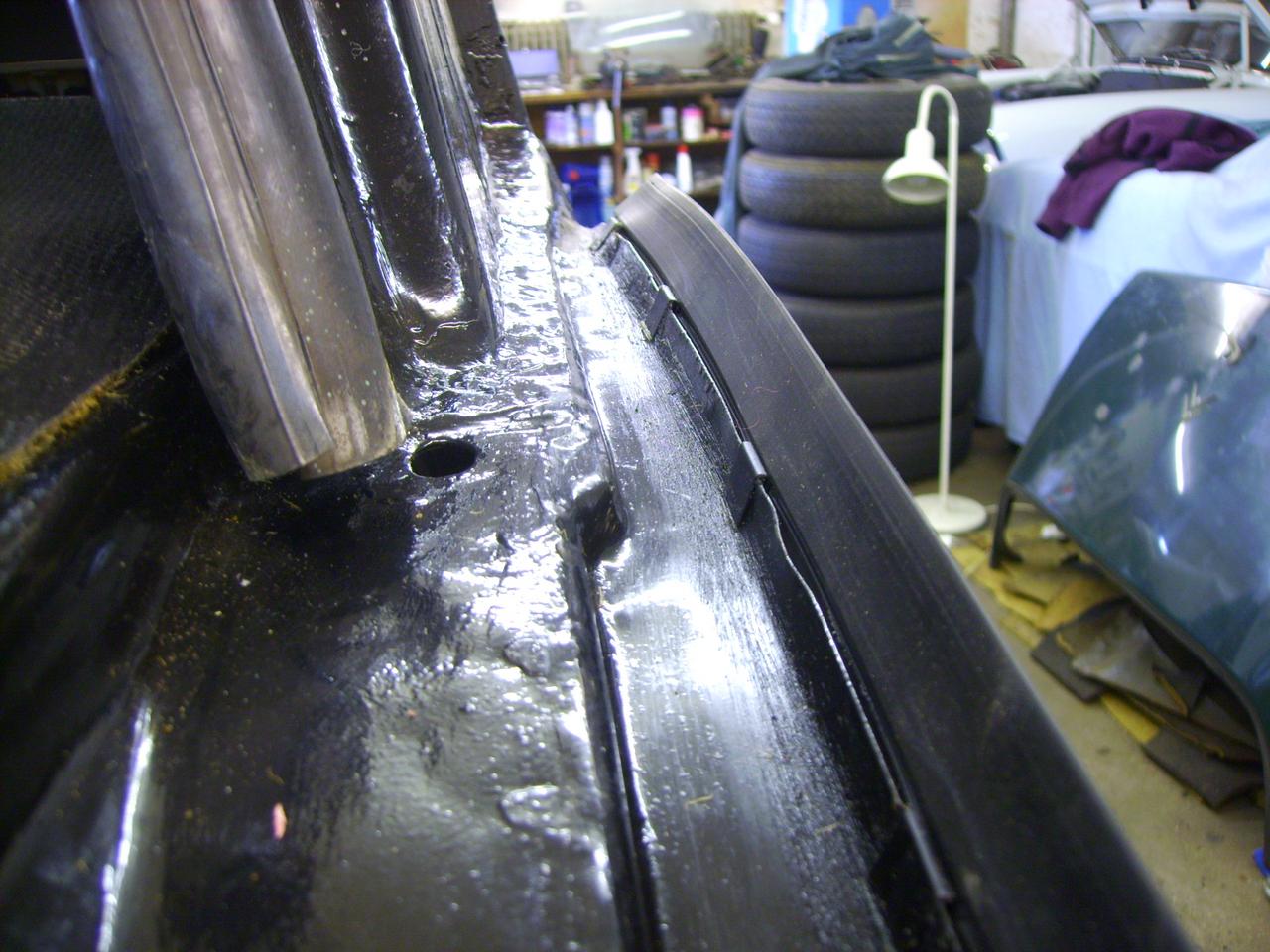 ich würde da keine Rep.Bleche mehr verbauen, alles Blech was doppelt liegt rostet schneller. Meine Lösung ist, das Gummi an der "Wasserrinne" einfach mit den bei der DS üblichen Klammern zu befestigen (siehe Fotos) und überall (bes. an den Klammern) ordentliche Fett dazwischen. Wenn du dann in den Radläufen noch Lokaris montierst, passiert da nichts mehr!