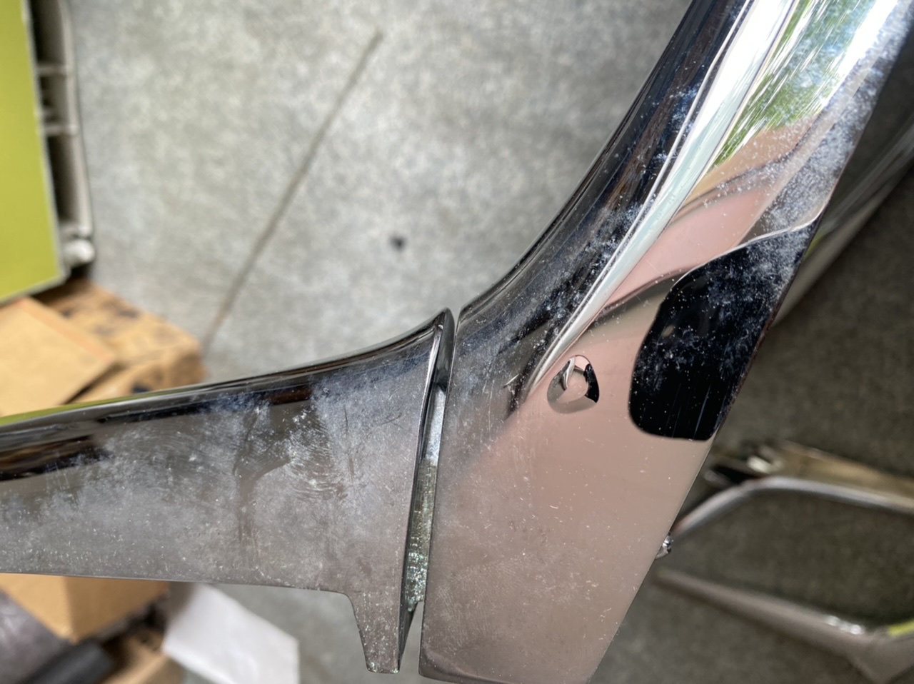 Leider ist während der Lagerung an einer Stelle schon wieder eine Ablösung des Chroms zu sehen.