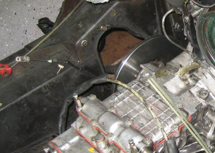 das Rohr vom vorderen Ausgleich über die Getriebetraverse und ist an der Traverse mit einer gekröpften Schelle befestigt . Der hintere Ausgleich ist unten am Rahmen/Quertraverse und noch einmal seitlich oben befestigt . Die Rohre sind schon einiges auseinander , wen aber die Seilzüge drin sind passt alles wieder .