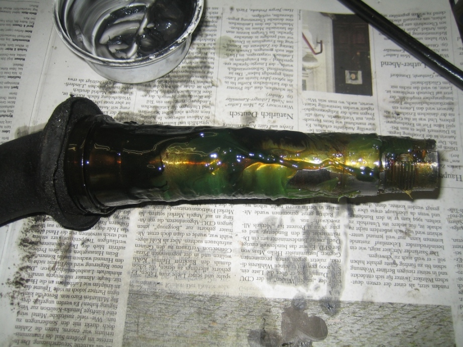 Gemischt hatte ich es mit etwas Getriebeöl. Anrühren und einträufeln bis es eine schöne weiche Masse ist.