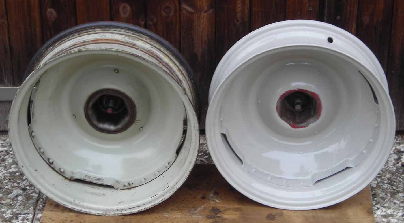 Die frühen ID-Zentralverschluss-Felgen (so etwa bis Mj62) haben auch fast RAL7032, aber mit einem leichten Grünstich, siehe Anlage: rechts Original, links mit RAL7032 neu angestrichen.