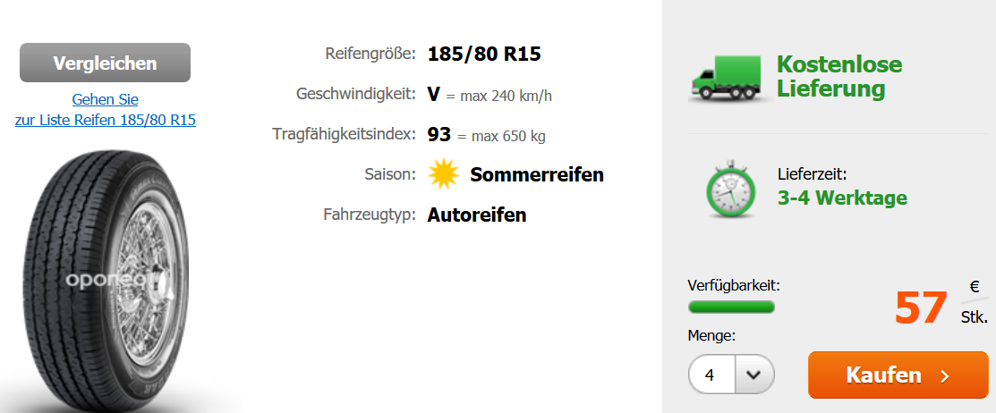 In 185/80/15 habe ich folgende billigere Reifen gefunden (ohne "R"-Reifen):