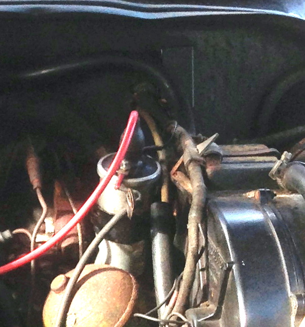 3. Wie verläuft sie dazwischen? Unter dem Gebläsekasten? Neben der Zündspule zum Motor hin? Zwischen Zündspule und Gebläsekasten?