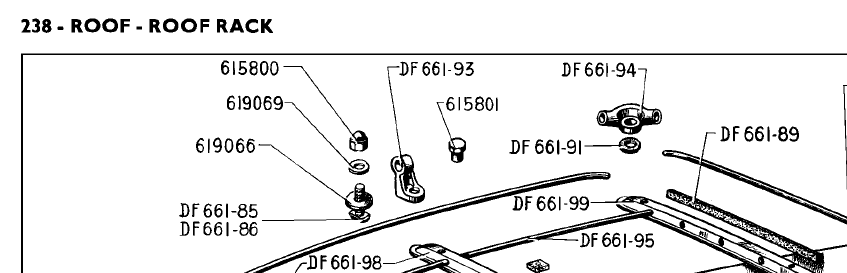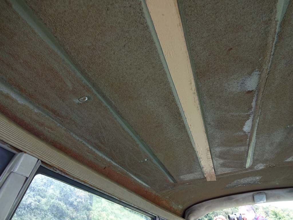 Nun liegt es nahe zu vermuten, daß die Sechskantschrauben falsch sind und hier mal was ersetzt wurde. Allerdings findet sich diese Konstellation auch an einer frühen Commerciale, bei der dies noch ziemlich sicher original ist. Damit sich die Schrauben nicht durchdrücken, gab es dort noch zusätzliche Schaumstoffstreifen mit Aussparungen der Schrauben. Dadurch ist natürlich auch die Kannellierung des Daches halbwegs ausgeglichen, die Verrippung zeichnet sich nicht so deutlich nach unten ab.